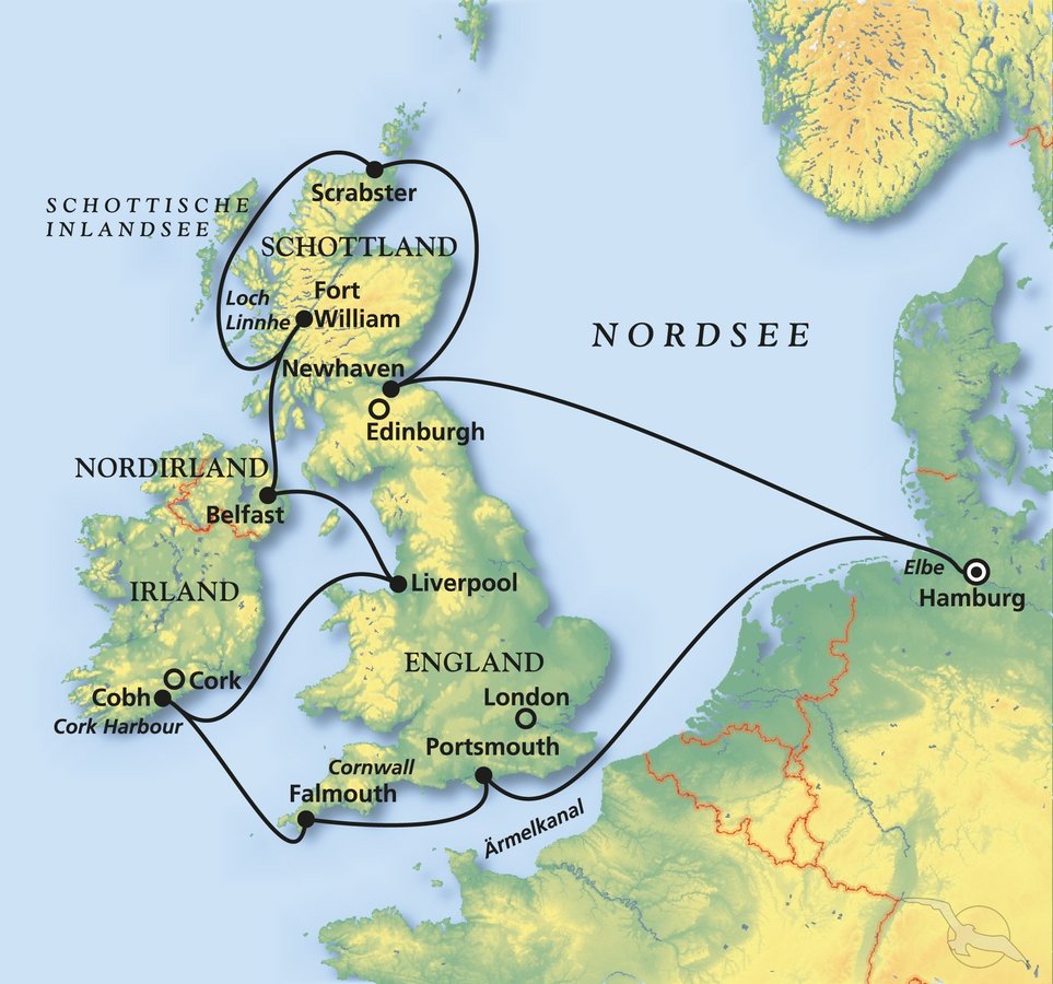 Doch bevor es über den großen See ging, stand noch eine 12-tägige England-Umrundung auf dem Reiseplan. Hierbei führte uns die Amadea zum königlichen Sommerschloss der Queen in Edinburgh, wo auch Megans Hochzeitskleid ausgestellt wird, zum Seeungeheuer Nessie, das in Schottland sein Unwesen treiben soll, und nach Belfast zum Titanic-Museum – ein Muss für Kreuzfahrtfans und Filmkenner.