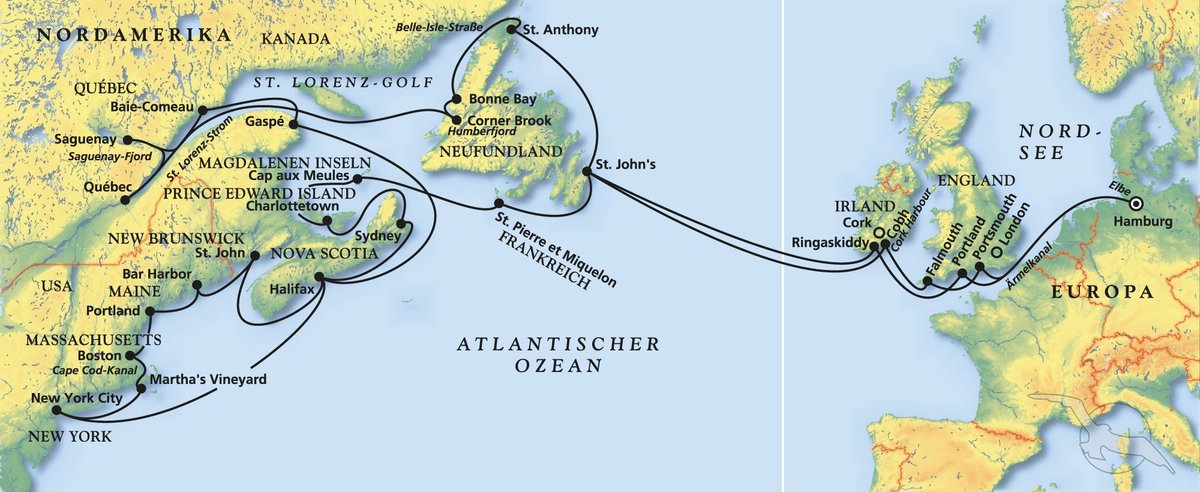 Die Indian Summer-Reise war in zwei Abschnitte geteilt. Von Hamburg bis New York und von New York zurück nach Deutschland. Dabei war es gut, dass sich ein paar der Häfen auf Hin- und Rücktour doppelten, da wir wetterbedingt nicht alle Häfen anfahren konnten. So hatten die Gäste, die beide Abschnitte gebucht hatten, auf dem Rückweg beispielsweise die Chance, Halifax und St. John’s zu sehen, die auf der Hinfahrt leider ausgefallen waren.