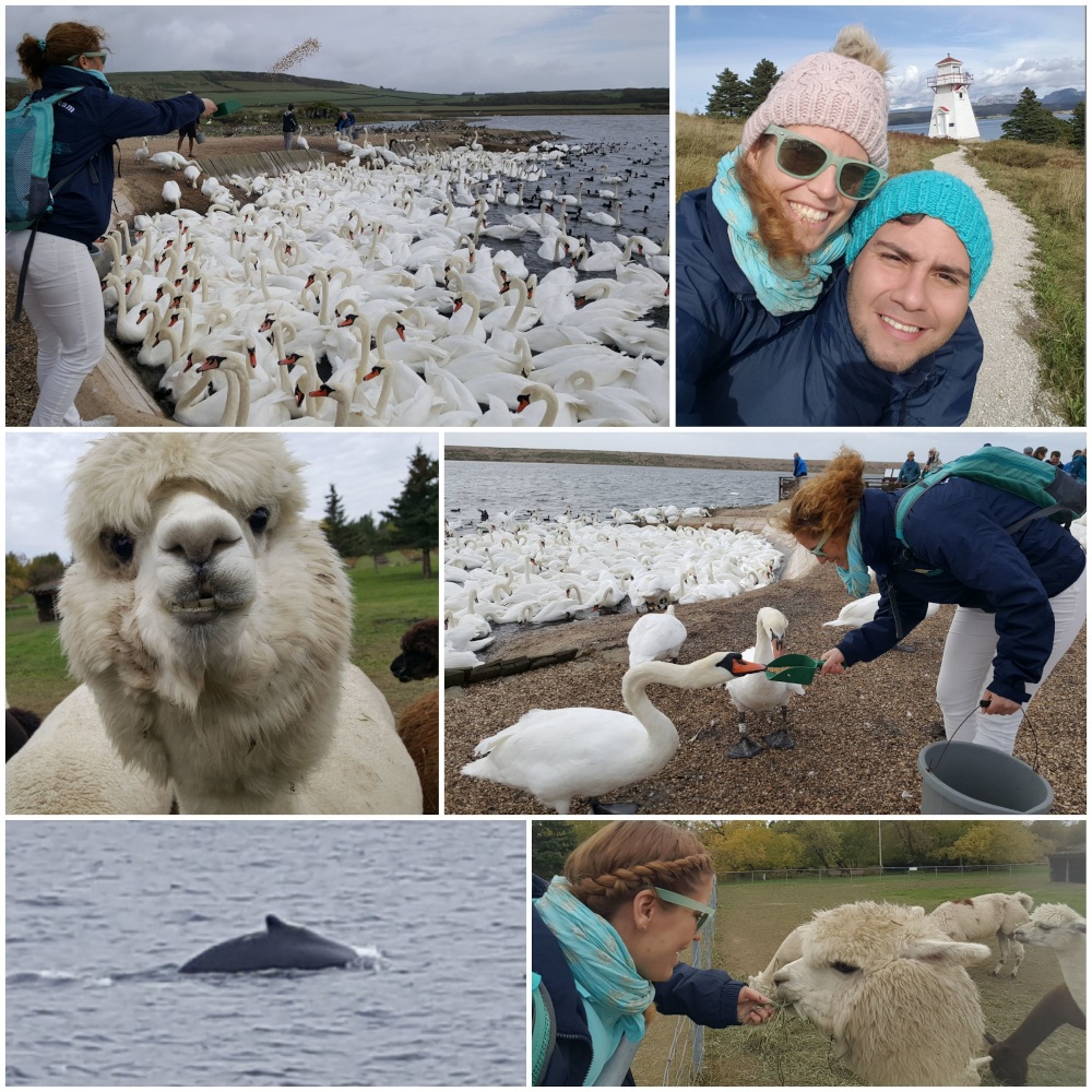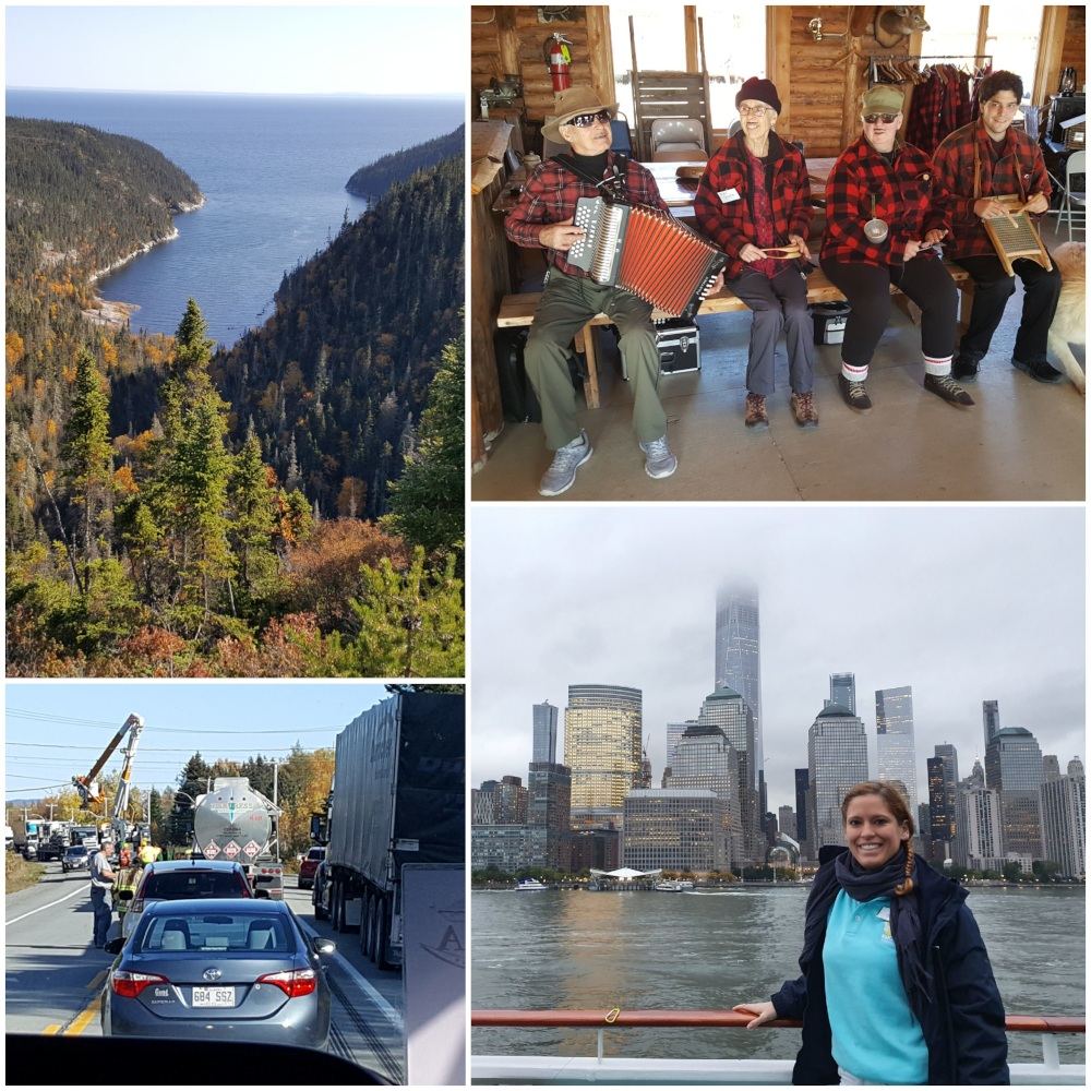 Der 10. Oktober war Franzis Geburtstag. Wir waren für den gleichen Ausflug in zwei unterschiedlichen Bussen eingeteilt. Eigentlich war diese Tour ohne ortsansässigen Guide geplant, da es sich nur um einen Transfer in eine etwas abgelegene Stadt handelte. Am Bus erwartete mich dann doch eine englischsprechende Dame, die uns auf der Fahrt etwas über die Gegend erzählen sollte. Schon kurze Zeit später war ich froh, dass doch jemand dabei war. Denn nach wenigen Kilometern Fahrt blieb der kanadische Schulbus, der als Ausflugsbus diente, stehen und ich merkte schnell, dass wir ein Problem hatten: Vor uns standen 2-3 weitere Autos und davor hing quer über der Straße eine Überland-Stromleitung herunter, sodass weder Autos, geschwiege denn Busse, hindurchfahren konnten. Wir warteten und warteten… die Gäste wurden natürlich etwas ungeduldig und unser Guide bekam über Kontakte und Telefonate heraus, dass ein zu hoher Truck die Leitung heruntergerissen hatte und die Feuerwehr und Stromanbieter kommen müssten, um das Problem zu beheben. Auch aus diesem Grund ist es wichtig, dass möglichst bei jedem Ausflug jemand von unserem Phoenixteam dabei ist. Hinter unserem Bus warteten mit uns noch zwei weitere Phoenixbusse auf die Weiterfahrt. Nur Franzi, die mit ihrer Gruppe vor uns gefahren war, war mittlerweile schon am Ziel angekommen. Ich hielt den Kontakt zu den Kollegen am Schiff, denn ewig warten kann man ja auch nicht. Das Schiff muss irgendwann auch wieder ablegen. Also hielt ich die Gäste auf dem Laufenden und nach ca. 1,5 Stunden Warten, aber auch interessanten Beobachtungen, wie die Stromleitung entfernt wurde, ging es endlich weiter. Vom Schiff hatte ich zwischenzeitlich die Rückmeldung erhalten, dass unsere Gruppen den Ausflug mit der geplanten Aufenthaltszeit in dem Ort durchführen konnten, da wir etwas später Ablegen durften. Im Ort Percé traf ich dann auf das Geburtstagskind Franzi und konnte nach der turbulenten Anfahrt noch kurz berichten, warum wir so lange gebraucht hatten, und mit ihr die Aussicht genießen, bis es für sie wieder zum Schiff ging. Abends gab es dann noch eine kleine Geburtstagsparty mit dem Phoenixteam für Franzi.